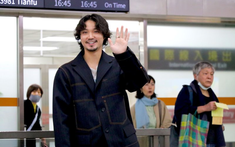 日本人氣男星磯村勇斗為宣傳全新奇幻電影《八犬傳》,6日中午首次抵達台灣松山機場。這場首次訪台之行吸引大批粉絲聚集接機大廳,還有粉絲裝扮成舞獅熱情迎接磯村的到來,特製的春聯上寫著「磯村勇斗」,令他驚喜不已。