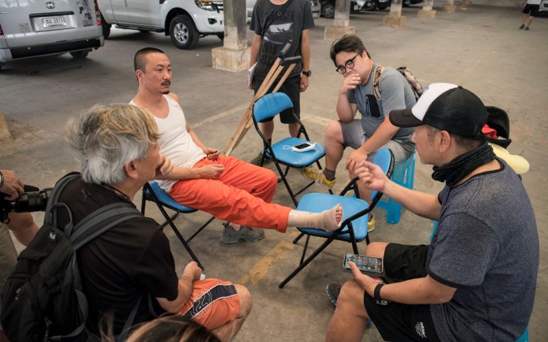 鄭中基自導自演最新作品《阿龍》,他不但為戲增重操肌,練出48吋的壯碩胸肌,更全身筋肉,但在拍攝一場在監獄打架的重戲時,一個在木桌木椅間跳上跳下的簡單動作,在採排時便意外受傷,他自己也大感意外,「一個鏡頭都還沒有拍到,只是單腳跳落地再加上踢人的簡單動作,偏偏就發生意外,當時大家都以只是扭傷,但我覺得這個痛不太對勁,幾乎痛到不能走路,去醫院檢查,泰國醫院的X光顯示骨頭沒事,醫生還說我的腳骨看起來很美,但我的感覺就像是骨頭裂了,所以再照了核磁共振,發現腳骨確實裂了,必需停工養傷。」
