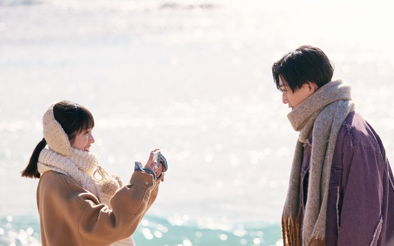 片中兩位主角展現了極高默契,許多令人臉紅心跳的橋段竟然源自現場的「即興發揮」互動甜度破表!福本莉子在戲中飾演平凡女高中生天野千明,擁有「負責叫八木勇征起床」的專屬特權 ,這種充滿日常感的親密互動,完美詮釋了漫畫的情感核心。八木勇征透露,有一場他在福本莉子手臂上簽名後,順勢玩起「男生女生配」的遊戲,正是兩人最自然的即興互動。片中出現上傳至社群媒體的「高甜女友視角照」,其實是兩人在排練時用手機互拍的真實花絮,連八木勇征都自豪地表示:「我們很有自信拍得相當不錯!」戲裡戲外都閃到讓劇組驚嘆。