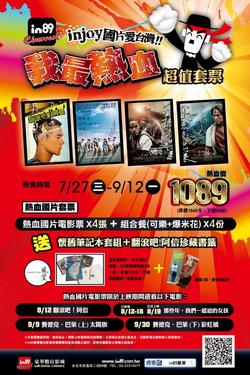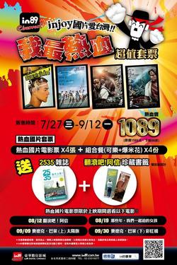 2011/08/16 西門町in89豪華數位影城「熱血國片套票」推出後廣受好評,即日起購買套票即有機會獲得林育賢導演親筆簽名《翻滾吧!阿信》珍藏書籤,或者是由九把刀導演親筆簽名《那些年,我們一起追的女孩》魔術翻轉收藏卡。