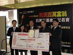 2009/04/10 山水國際娛樂與新光銀行於今日(10日),在新光摩天大樓16樓舉行《貧民百萬富翁》百萬好運抽獎記者會,新光銀行董事長李增昌與山水國際娛樂財務長張君怡代表共同主持