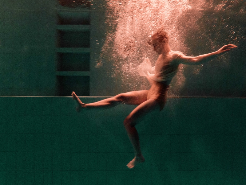 一個個沉浸水底的身體,教尋常的泳池有了意想不到的樣貌。入夜後,水下的世界化身神秘舞台,舞者以身做詩,劃出、滑過一道道乍現的生命軌跡。不僅周遭的聲響幻化形變,自由與邊界、親密與疏離,也將重新定義自身。