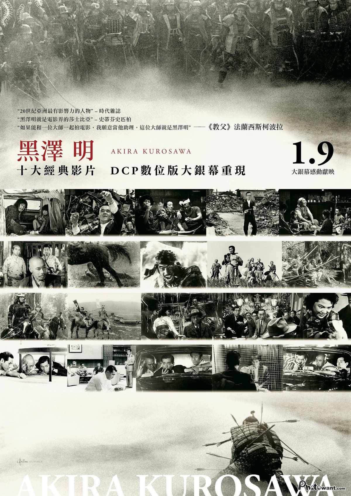 黑澤明十部經典作品,大銀幕修復完整呈現。包括《羅生門》、《生之慾》、《七武士》、《蜘蛛巢城》、《戰國英豪》、《大鏢客》、《椿三十郎[1962]》、《天國與地獄》、《紅鬍子》、《電車狂》。