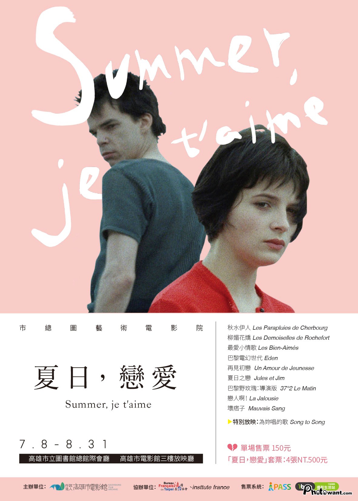 愛情是千古不衰的母題之一,夏天是屬於戀人的季節。高雄市電影館今年再次與法國在台協會合作,於暑假期間策劃一檔向歌舞片以及愛情片致敬的「夏日,戀愛主題影展」。