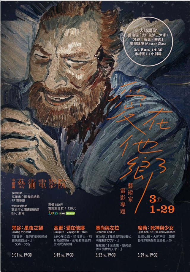 「愛在他鄉:藝術家電影專題」3月打開後印象派三大家:梵谷、高更、塞尚藝術之謎,坎城影展最高榮耀金棕櫚大導羅宏康特、重磅回歸《小鬼作家養成班》高雄獨家搶先映。