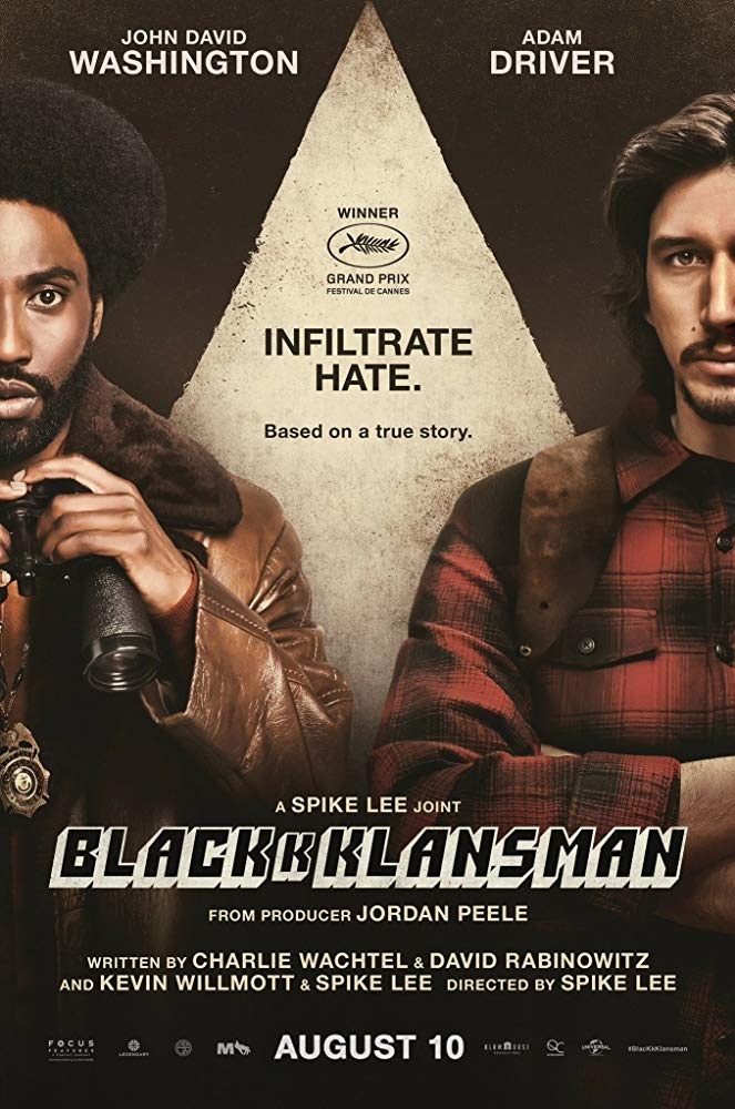 史派克李榮獲71坎城主競賽榮獲評審團大獎,91屆奧斯卡最佳改編劇本,亞當崔佛、丹佐華盛頓之子約翰大衛華盛頓(John David Washington)主演。