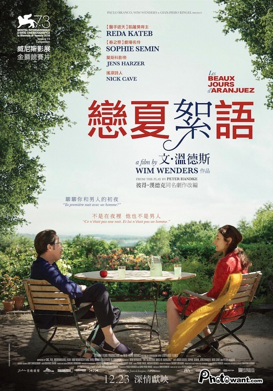 德國導演文溫德斯與老拍檔編劇彼得漢德克首部法語發音新作,入圍73屆威尼斯影展主競賽,描述美麗夏日的一座花園,男女於私密的對談之中,透露出迥異的兩性觀點:談論性、童年、往事,探討夏日的精髓。