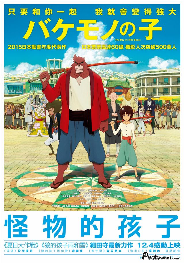 本片是擅長描述細膩感情與動人故事《狼的孩子雨和雪》細田守的最新作品,由役所廣司、染谷將太配音。故事以怪物與少年之間不可思議又奇妙的師徒情誼為主軸,堪稱2015年最熱血的日本動畫電影。