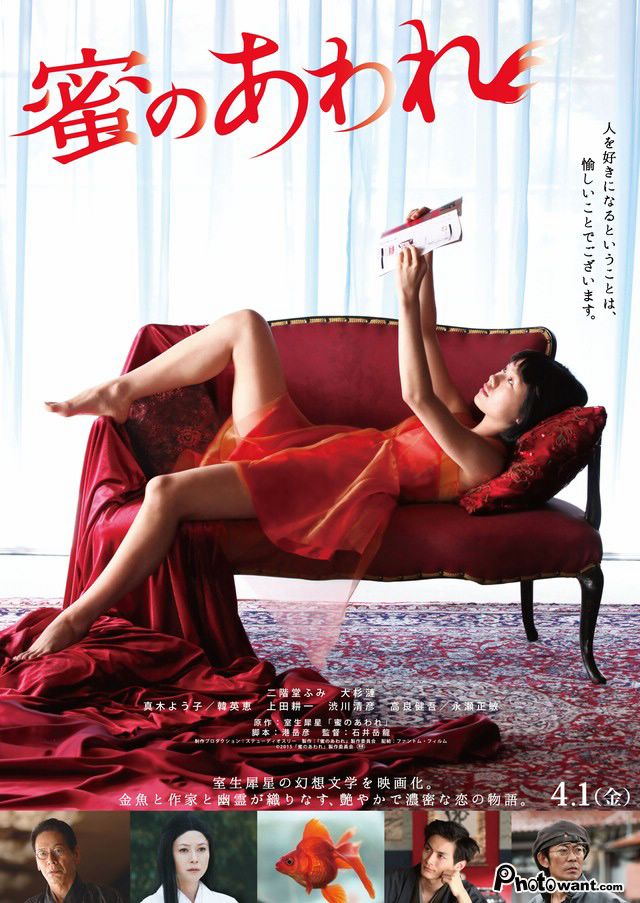 日本文豪室生犀星奇想小說改編,超華麗演員陣容,重現原作瑰麗世界觀。威尼斯影展最佳新人獎二階堂富美、日本奧斯卡影后真木陽子攜手主演。一隻紅色金魚變身為人類,與老作家幽靈情婦上演一場複雜的三角戀。
