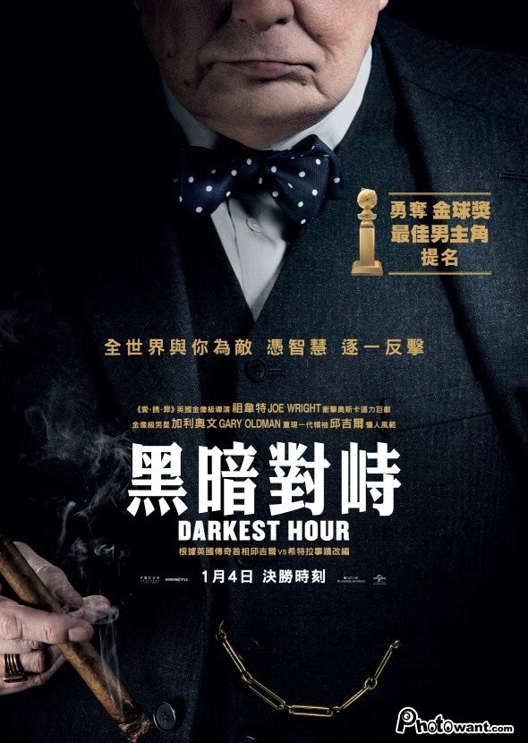 榮獲90屆奧斯卡影帝、金球獎戲劇類最佳男主角。喬萊特執導,蓋瑞歐德曼飾演領導英國二次大戰的前英國首相邱吉爾,以睿智與前瞻性的想法,帶領英國甚至同盟國,與德國希特勒在法國進行反擊。