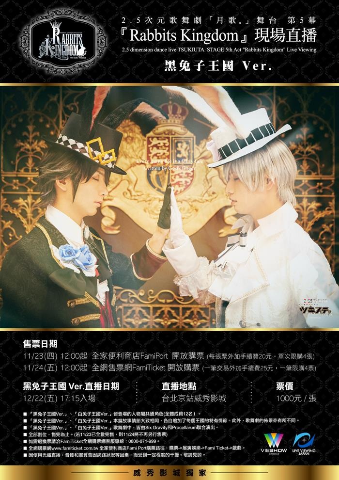 2.5次元歌舞劇「月歌。」舞台第5幕『Rabbits Kingdom』兔子王國Ver.千秋樂現場直播。可同時欣賞戲劇和舞蹈!月歌。第5幕『Rabbits Kingdom』。台北京站威秀影城獨家登場。