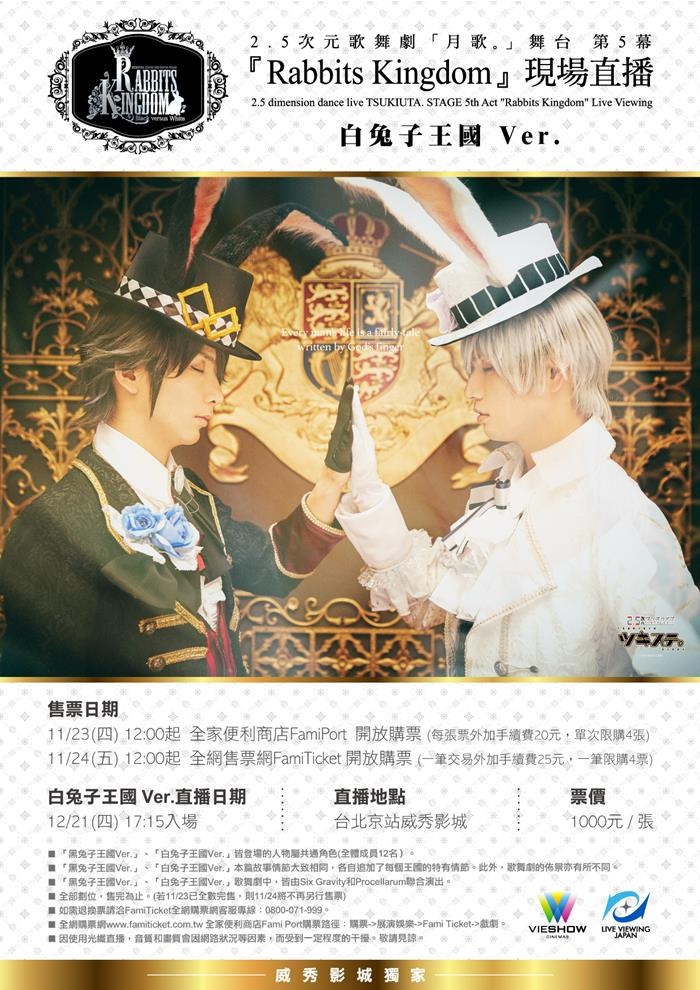2.5次元歌舞劇「月歌。」舞台第5幕『Rabbits Kingdom』兔子王國Ver.千秋樂現場直播。可同時欣賞戲劇和舞蹈!月歌。第5幕『Rabbits Kingdom』。台北京站威秀影城獨家登場。
