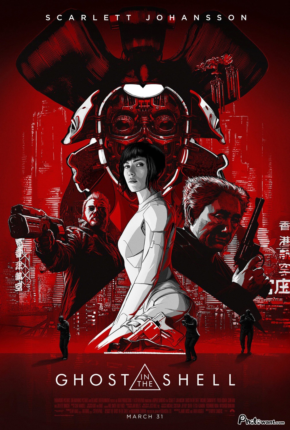 改編自日本作者士郎正宗的連載漫畫《攻殼機動隊》,由好萊塢取得版權翻拍的真人電影。講述未來科技時代,一群接受身體義體化的前特種部隊「公安九課」,專對抗如生化人與網路駭客的新型態犯罪事件。