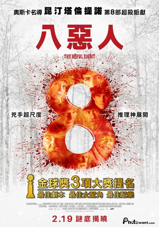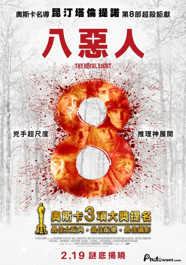 2016奧斯卡最佳原創音樂。昆丁塔倫提諾第八部作品,《決殺令》原班團隊製作。要命的猜忌,致死的相逢,猜不透的結局令人拍案叫絕!因暴風雪而齊聚小木屋的八人,個個深藏秘密、各懷鬼胎,因而掀起一片腥風血雨。