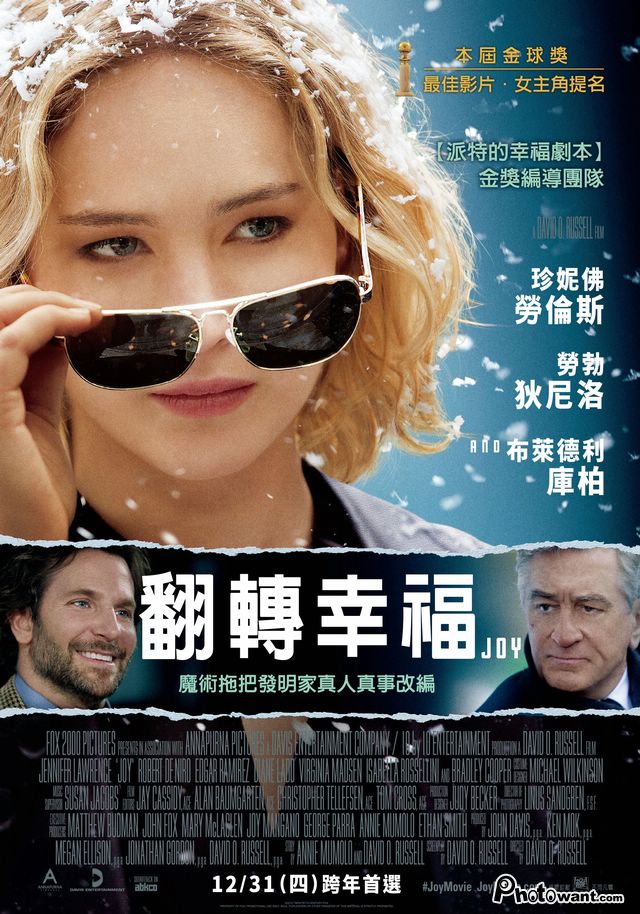 珍妮佛勞倫斯再度以本片入圍2016奧斯卡最佳女主角,珍妮佛勞倫斯與導演大衛歐羅素三度合作,改編自真人真事。描述單親媽媽喬伊努力打拼,不認命的她在發明了時代改革的魔術拖把後,也改變了自己的人生。