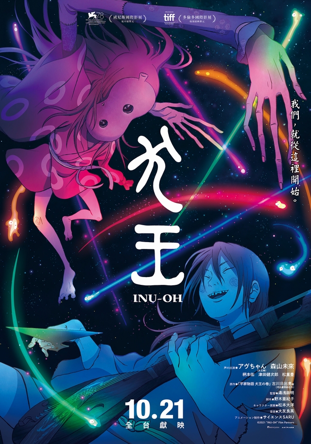 第78屆威尼斯影展「地平線獎」入選,湯淺政明最新動畫作品。以「能劇」為題材,講述一段亂世中的永恆情誼...。在能劇界頂點等待著兩人的究竟是…?由隱藏在歷史深處的能劇師.犬王與友魚,帶來永恆的友情物語。