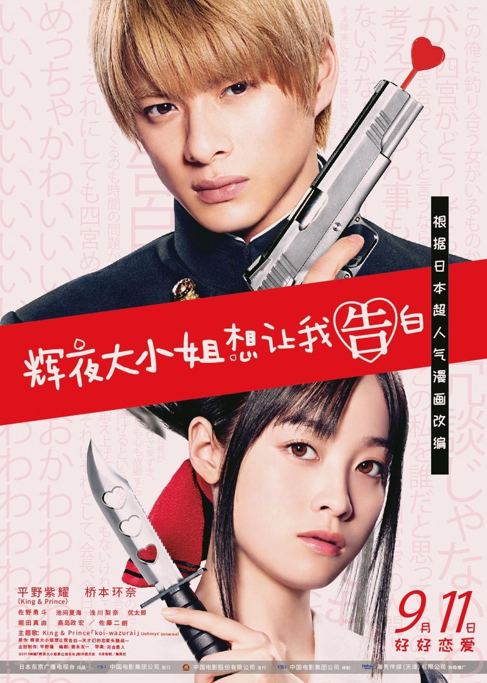 King & Prince成員平野紫耀與橋本環奈攜手主演,改編自作家赤坂明同名漫畫。一個是學生會長,一個是學生副會長,兩個高傲的男女情意相投,卻不願誰先向誰告白。於是,他們各自計畫讓對方向自己告白。