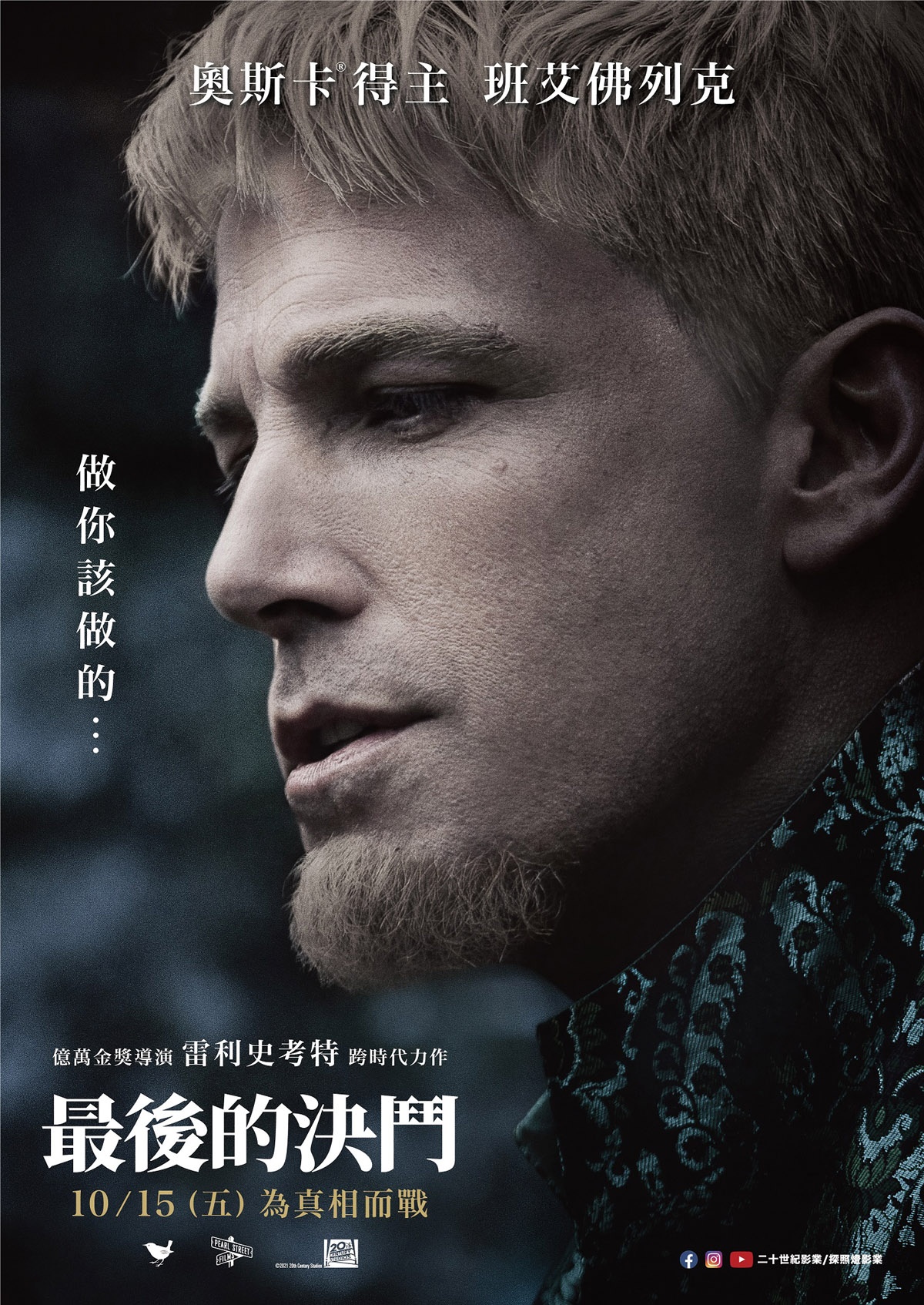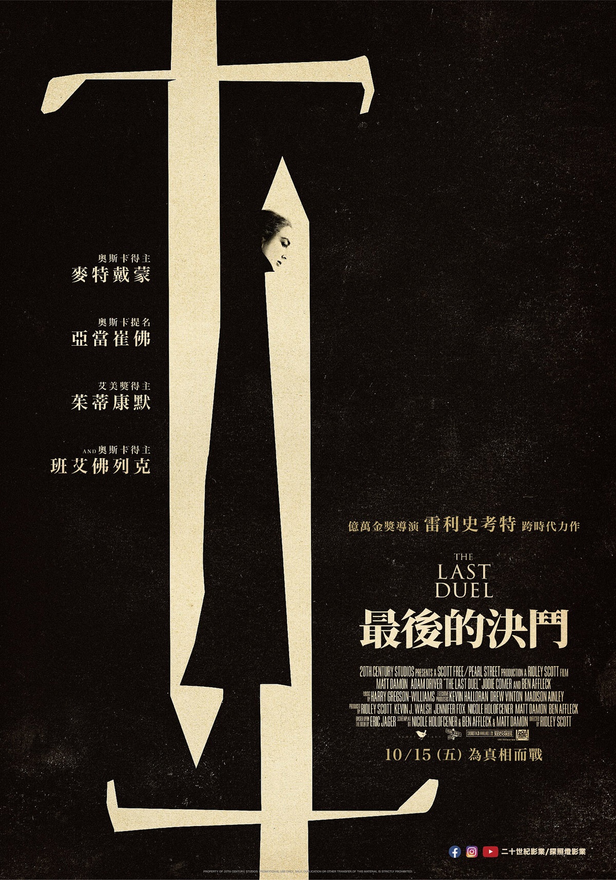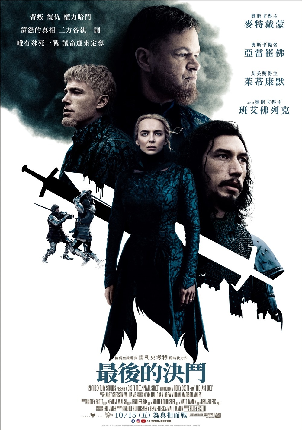 雷利史考特執導,班艾佛列克、麥特戴蒙等主演,描述14世紀法國最後一場合法的決鬥,法國騎士向查理六世請求的一場決鬥。他們唯有殊死決鬥才能為爭端劃下句點。