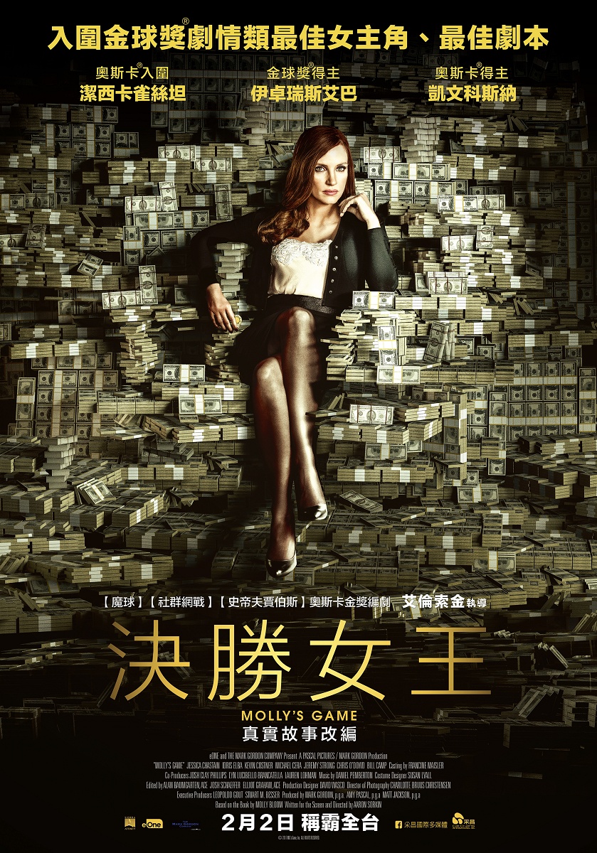 《社群網戰》、《史帝夫賈伯斯》金獎編劇艾倫索金首部執導作!潔西卡雀絲坦、伊卓瑞斯艾巴與「奧斯卡得主」凱文科斯納領銜主演!茉莉布魯真實傳奇回憶錄!前滑雪選手如何搖身一變,成為好萊塢知名撲克女王?