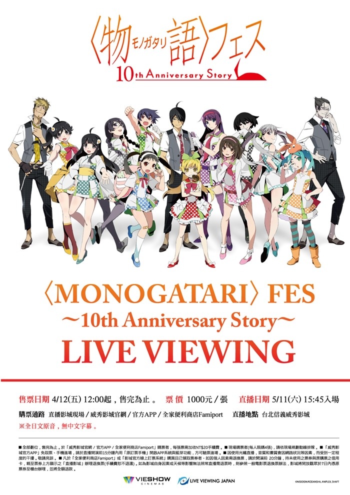 角色歌曲 & 朗讀「僅此一夜」祭典,動畫〈MONOGATARI〉series 10周年記念活動,信義威秀影城獨家登場。