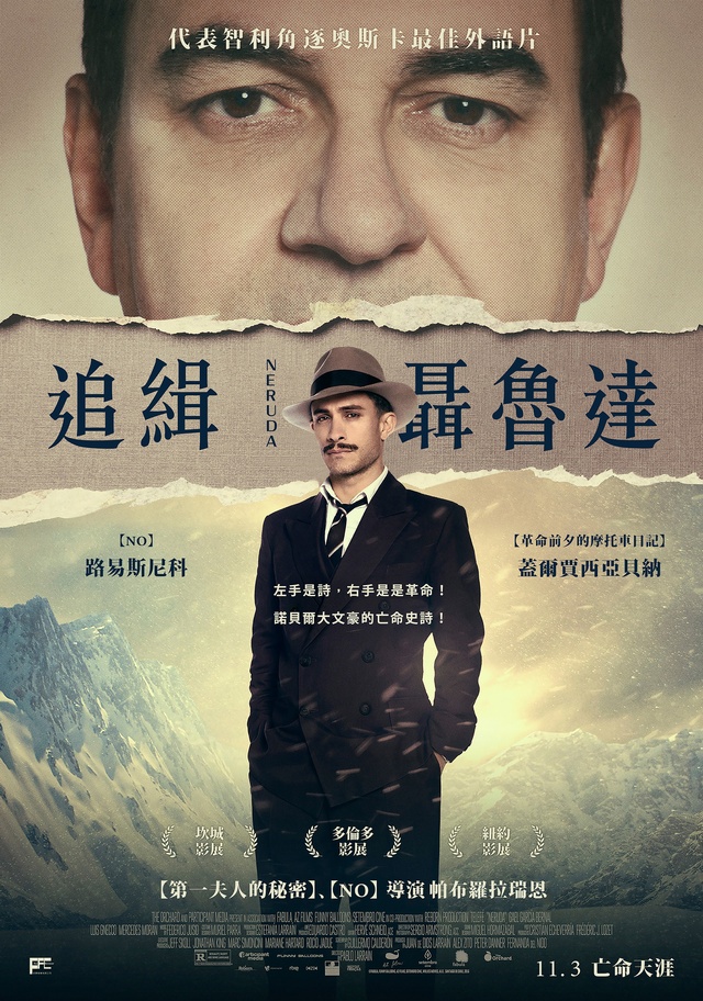 代表智利角逐奧斯卡最佳外語。導演帕布羅拉瑞恩再次入圍坎城影展非正式單元導演雙週,描述諾貝爾文學得主聶魯達,因共產黨員身分,於冷戰時期受到智利政府追捕、肅清,他如何藉由文字與當權者抗衡、為自由發聲?