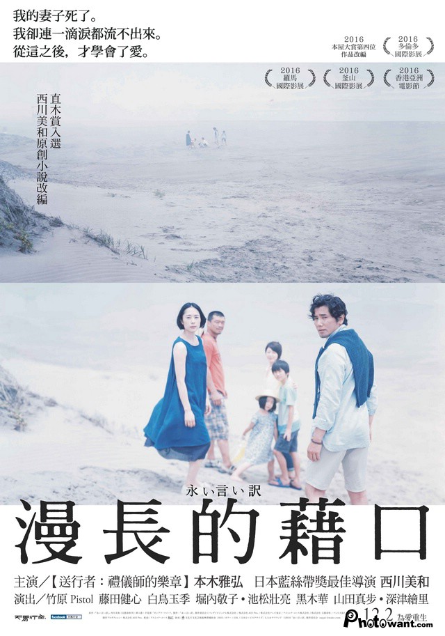 導演西川美和原創作品,《送行者》本木雅弘、深津繪里、黑木華、池松壯亮主演。人氣作家幸夫得知妻子和好朋友旅遊途中車禍身亡,正與外遇對象偷情的他,連一滴眼淚也未曾留下......。