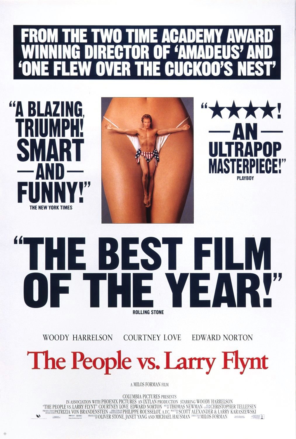 《阿瑪迪斯》導演米洛斯福曼執導。原本聲名狼藉的脫衣舞俱樂部老闆賴瑞佛林特,在長期與法律制度抗爭的過程中,無形中卻使得這場事關情色的言論風暴,演變成有關美國憲法保障言論自由、公民自由的象徵。