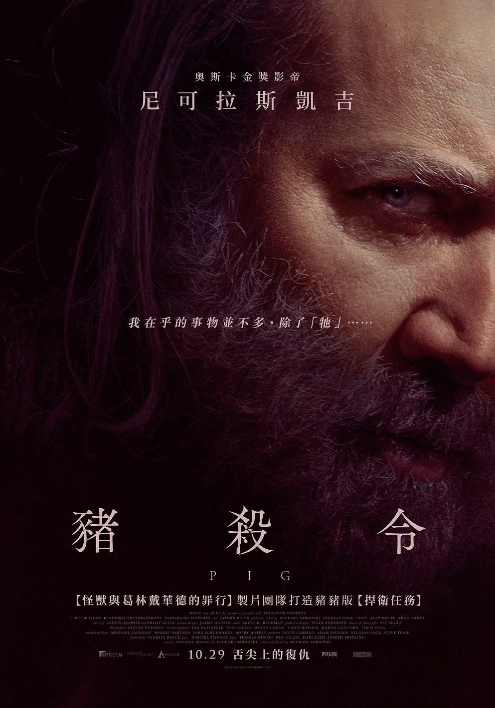 一切只為一頭豬!尼可拉斯凱吉再秀超狂演技化身復仇惡鬼!描述松露獵人羅伯的最好夥伴就是一頭擁有敏銳嗅覺的松露豬。某日,惡徒強行擄走羅伯最心愛的松露豬,為救回松露豬,他被迫面對黑暗過往...