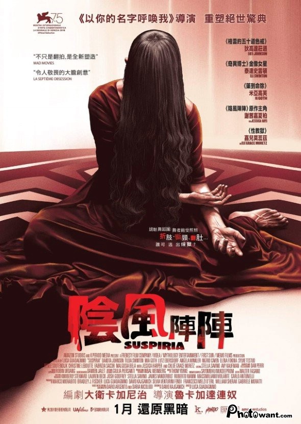 《以你的名字呼喚我》導演盧卡格達戈尼諾,翻拍義大利恐怖大師達利歐阿基多的「邪典電影」《坐立不安》,描述美國女孩蘇西在德國芭蕾宿舍,相繼遇到同儕失蹤與被殺,「把靈魂奉獻給舞蹈」原來不是那麼簡單。