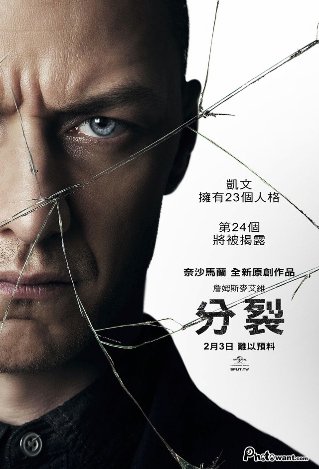 《靈異第六感》驚悚大師奈沙馬蘭最新執導,詹姆斯麥艾維、《女巫》安雅泰勒喬伊主演。被診斷出23個人格的凱文,還有一個主宰全部人格的「他」尚未顯現。為了在人格的戰爭中存活下去,他不惜綁架3名少女。