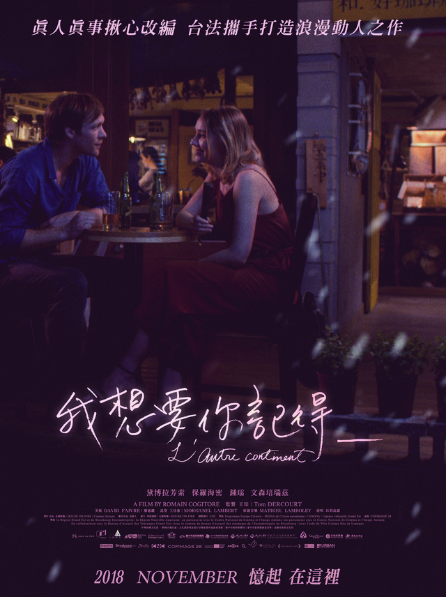台灣與法國共同製作,真實故事改編。導演羅曼柯杰特第二部劇情長片,描述個性截然不同的兩個人,在港都高雄開始了他們的法式愛情故事。本片以台灣巷道、廟宇和山間景觀刻畫戀人相愛的記憶。