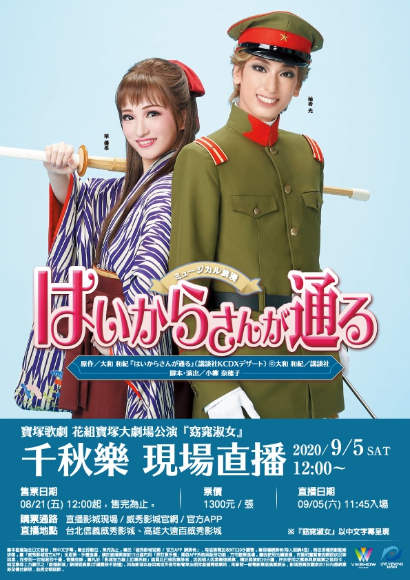 寶塚歌劇團花組新TOP組合首次公演,浪漫音樂劇『窈窕淑女』 千秋樂,於日本、台灣的電影院舉行現場直播。