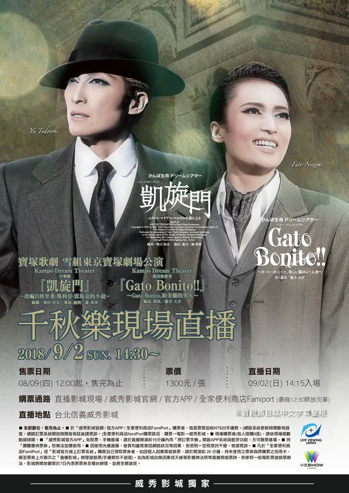 華麗經典當代演繹,歷經18年話題再現!寶塚歌劇雪組東京寶塚劇場千秋樂,台北信義威秀影城獨家登場!